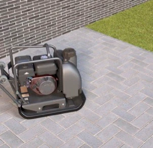 Procédez au damage à partir du bord de la surface en pavé et dirigez-vous lentement.